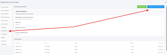 Comment ajouter ou changer votre carte bancaire (permettant de payer votre abonnement) en quelques clics.
