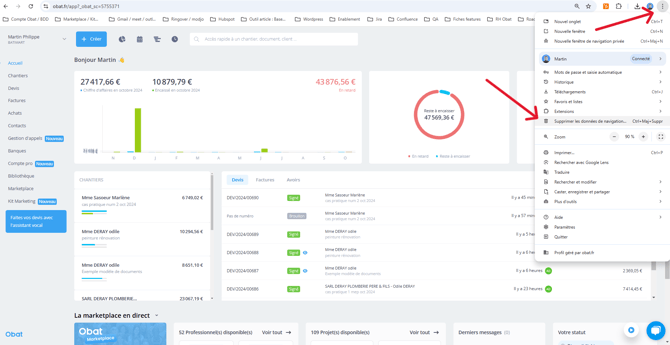 - En haut à droite, cliquez sur les 3 points puis Effacer les données de navigation.