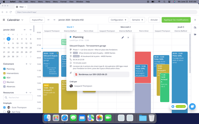 Consultez et partagez vos bordereaux de chantier directement dans le calendrier OBAT