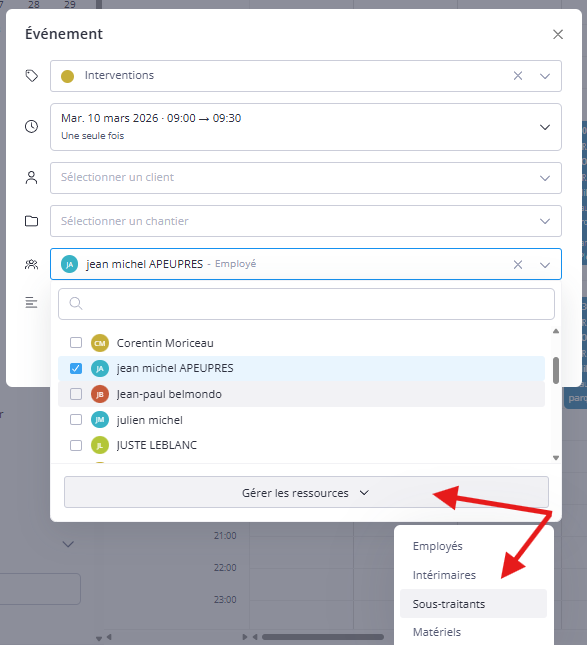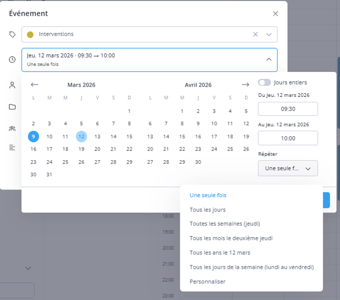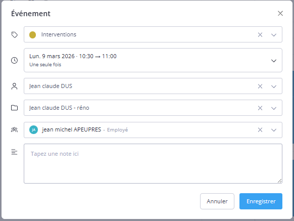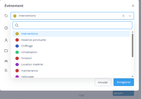 ajouter le type d’événement (rendez-vous client, intervention, visite de chantier…)