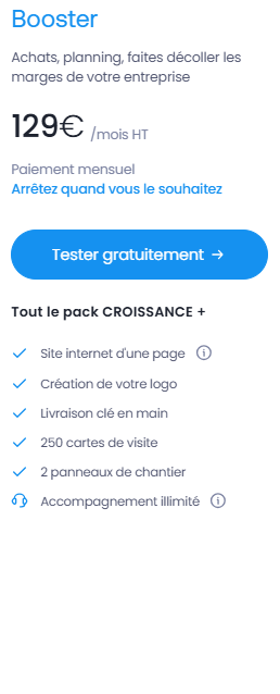Le pack croissance est un pack comprenant le pack pro (Devis et facturation) et notre outil de planification lié à un calendrier et à un suivi de temps. Il comprend 👇