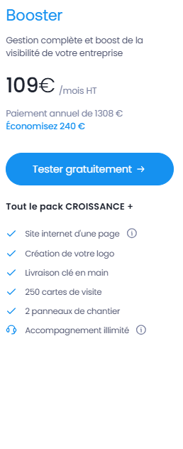 Le pack Booster vous offre la possibilité d'améliorer la visibilité et l'image de votre entreprise, vous permettant ainsi d'attirer davantage de clients. Il comprend les éléments suivants 👇