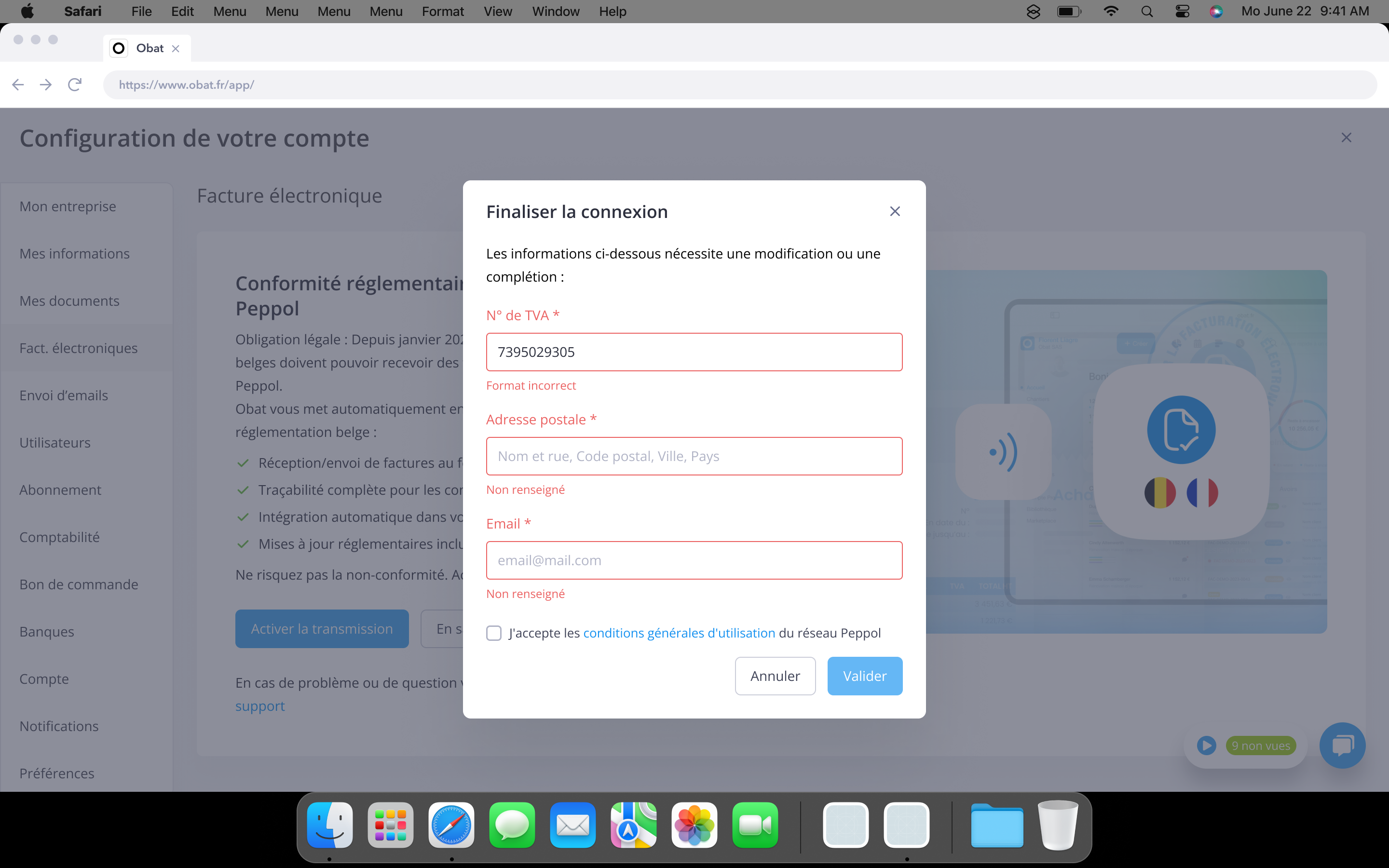 Génération automatique de votre identifiant Peppol (ex : 9925:BE0123456789)