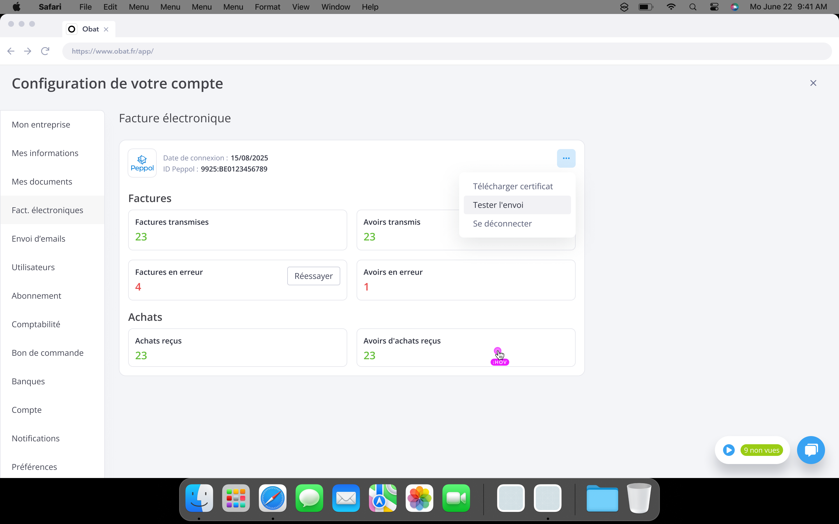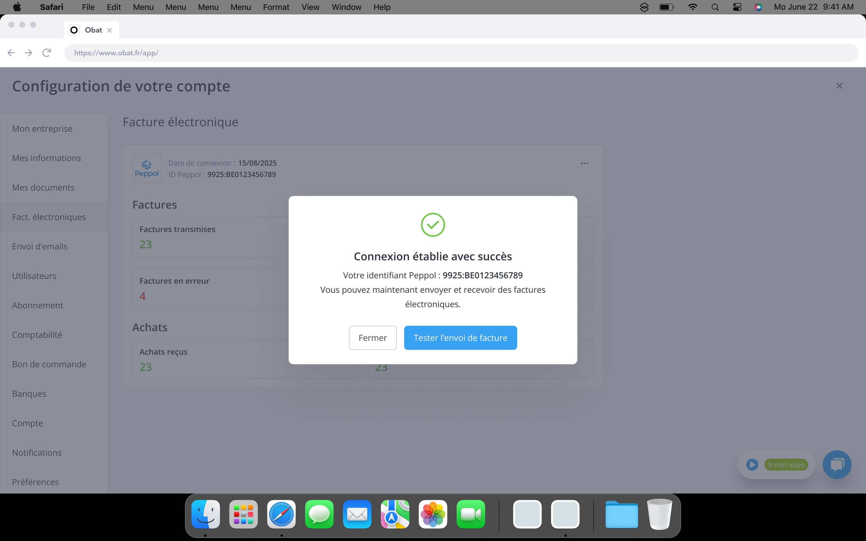 Si tout est en ordre, OBAT envoie automatiquement via Peppol