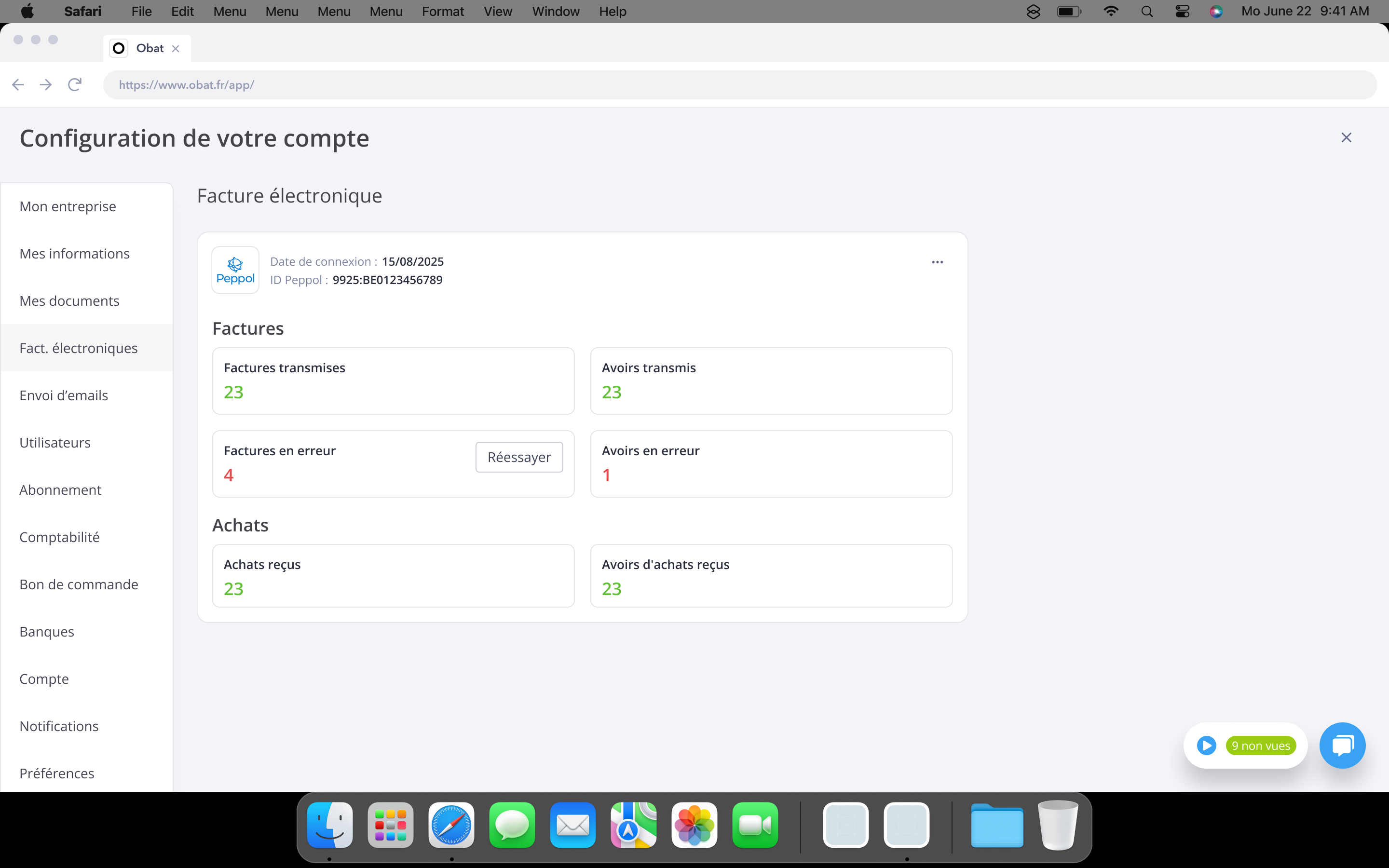 Les factures reçues via Peppol sont automatiquement intégrées dans OBAT :
