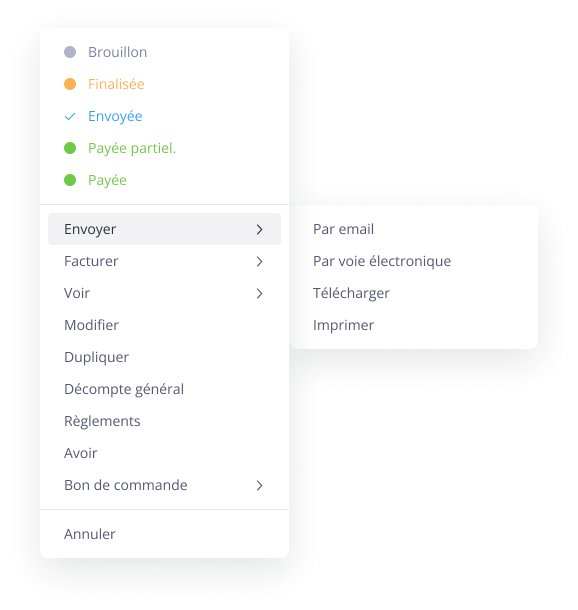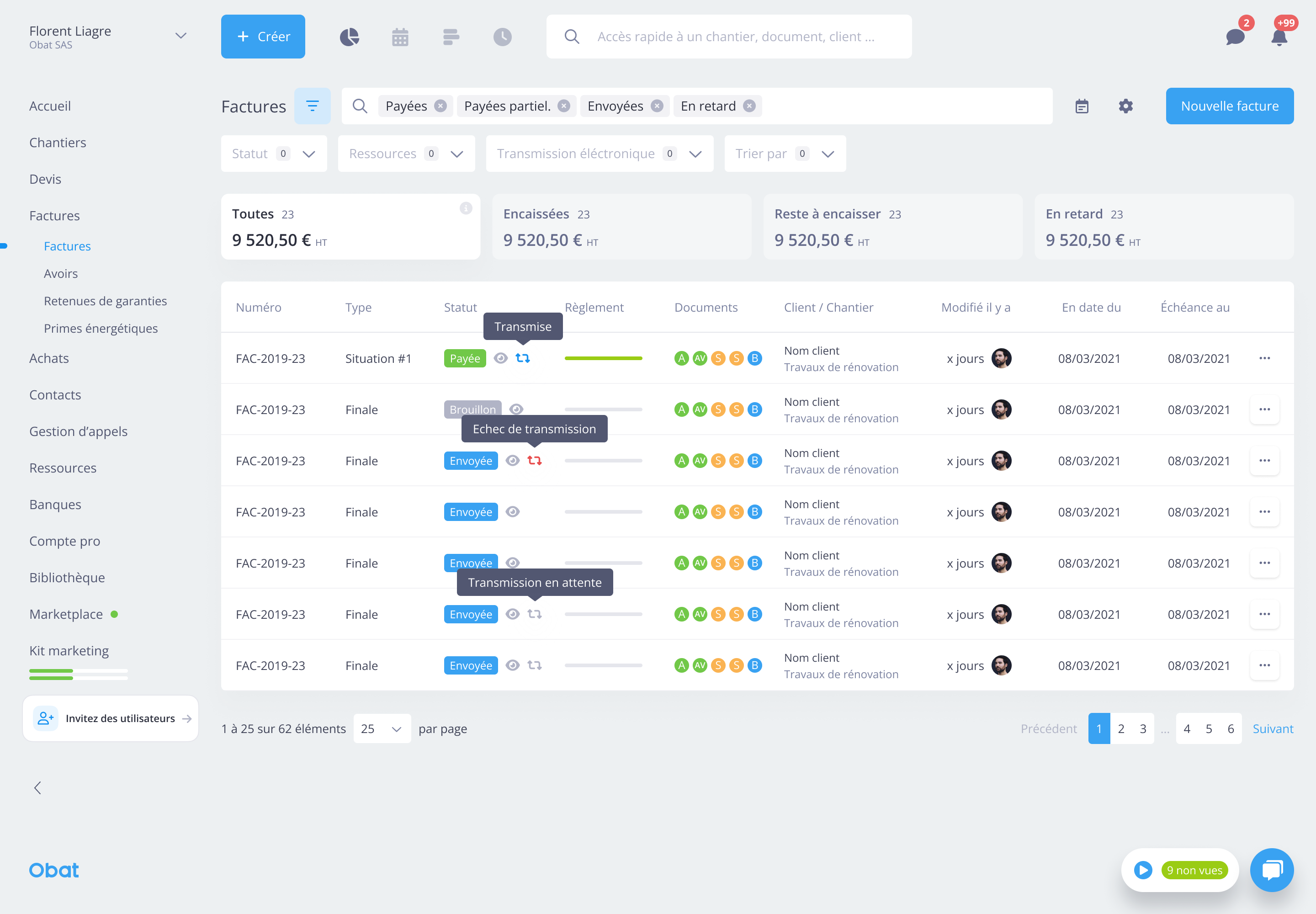 Dès qu’une facture passe en statut "Envoyé", OBAT :