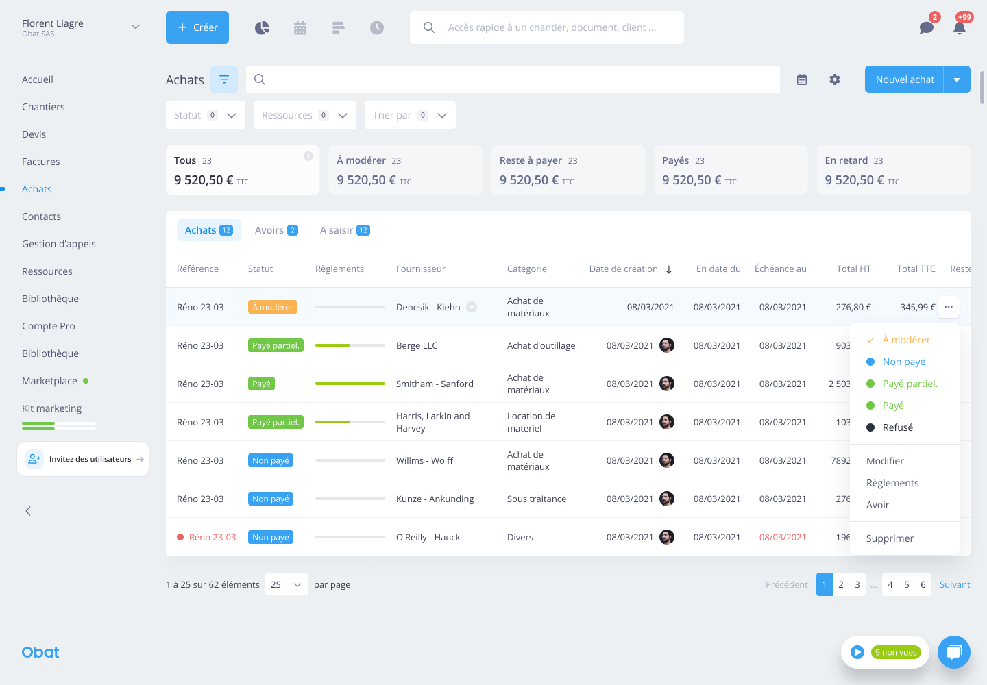 OBAT vous informe selon votre rôle (admin, comptable, chef de chantier, etc.) :