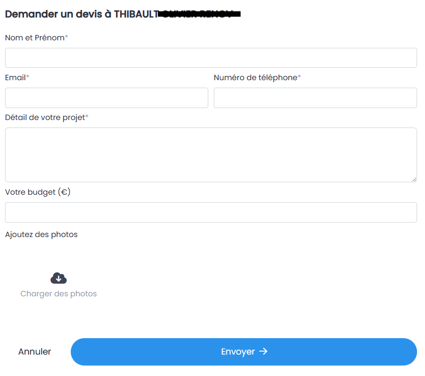 Jusqu’à présent, seuls les clients E-réputation profitaient d’un formulaire avancé. Les autres devaient se contenter d’un formulaire simple qui envoyait… un simple email. Résultat : des opportunités de chantiers mal exploitées, une valeur invisible de l’annuaire, et des leads difficilement traçables.