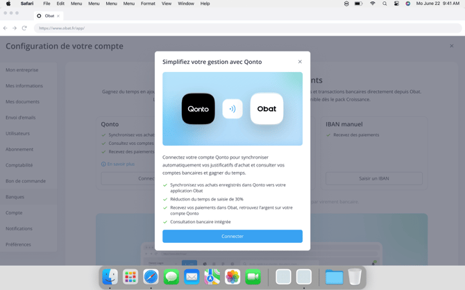 Connexion automatique à Qonto depuis OBAT