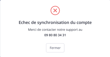En cas d’erreur de synchronisation, un message clair s’affiche avec la possibilité de réessayer ou de contacter le support OBAT.