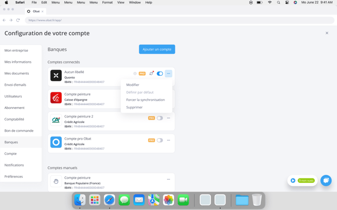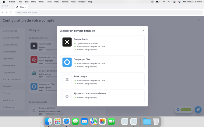Vous pouvez désormais connecter votre compte bancaire Qonto directement depuis Paramètres > Banques dans votre logiciel OBAT. Une fois la connexion réussie, ce compte apparaît automatiquement dans la liste de vos comptes bancaires connectés 🏦.