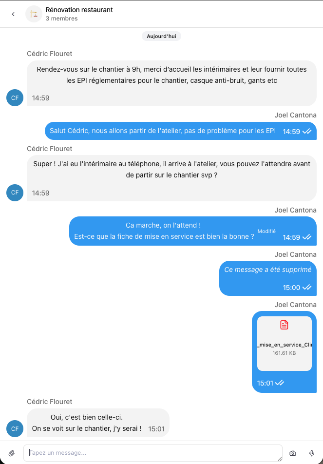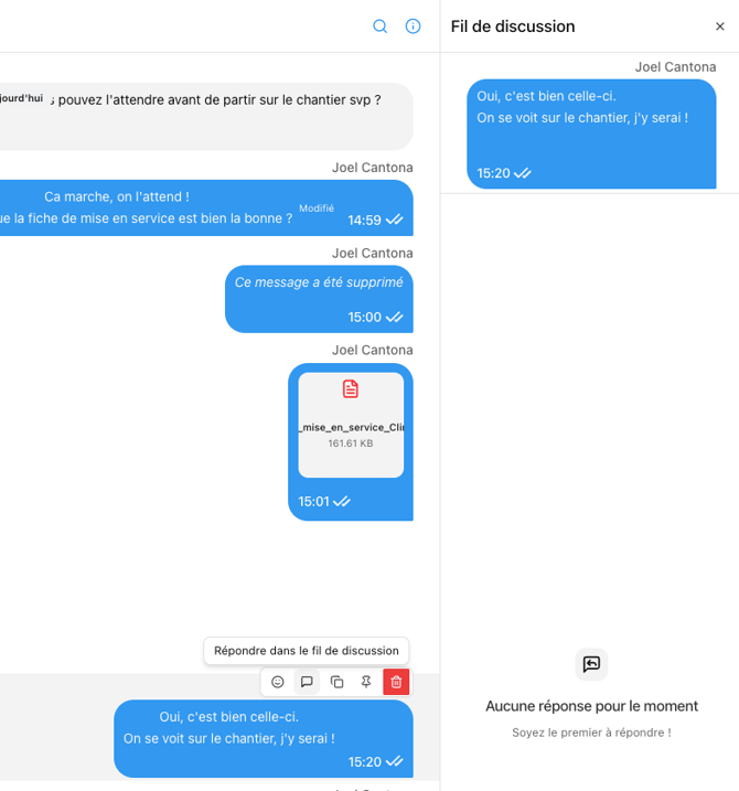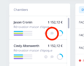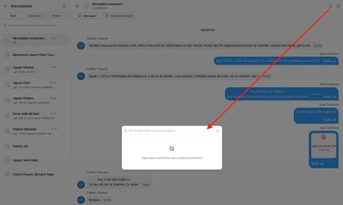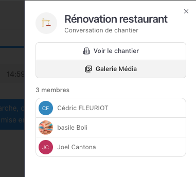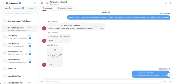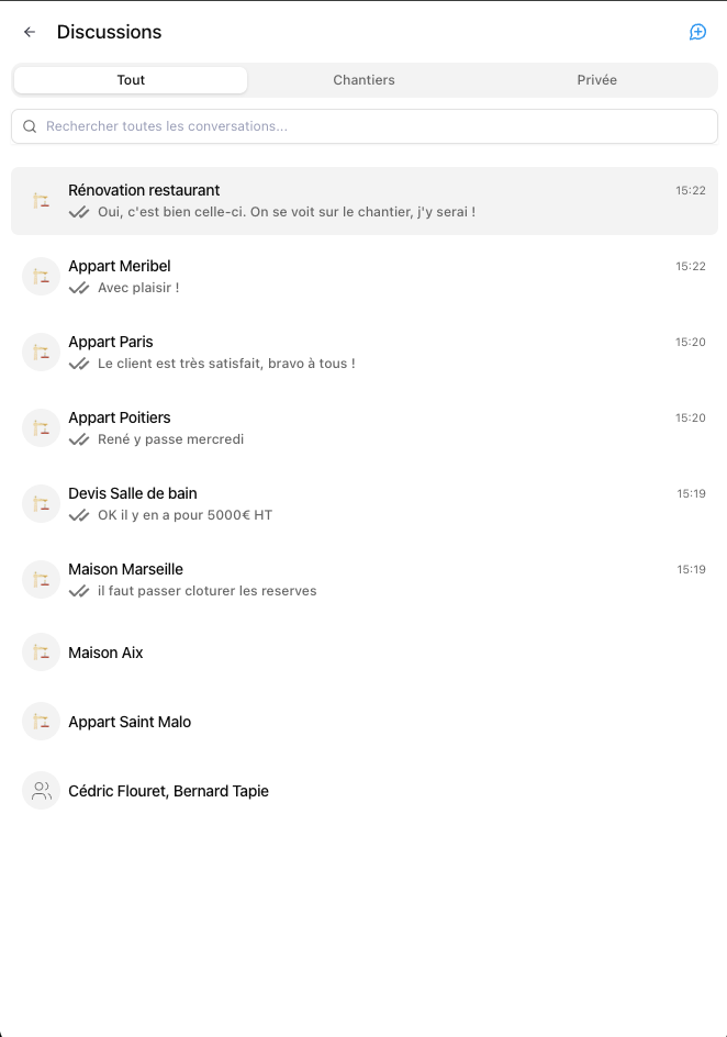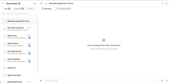 Retrouvez alors la conversation de ce chantier dans la liste des conversations