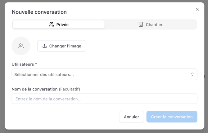 🔐 Seuls les propriétaires, administrateurs et chefs de chantier peuvent créer une conversation de chantier.