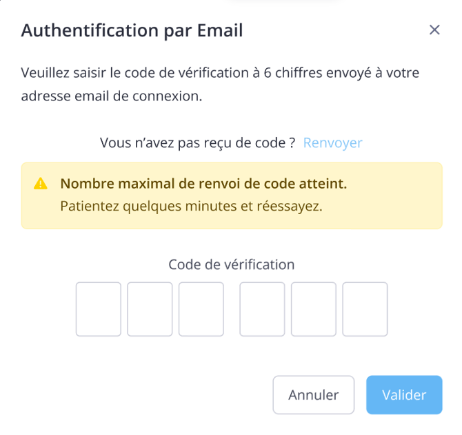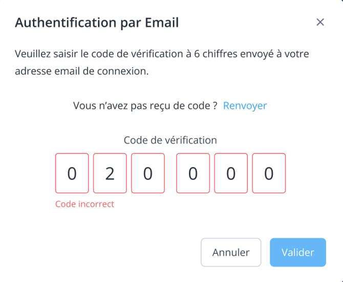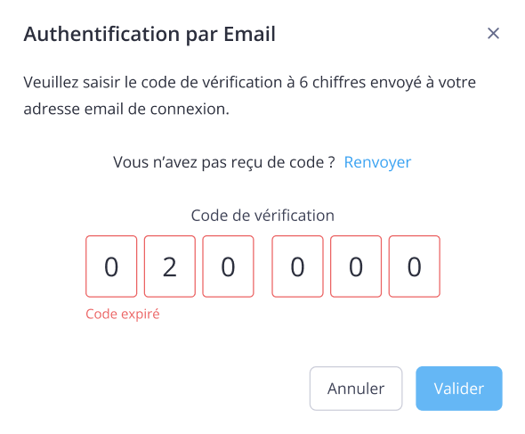 En cas d’erreur ou de dépassement de temps, vous pouvez redemander un nouveau code.